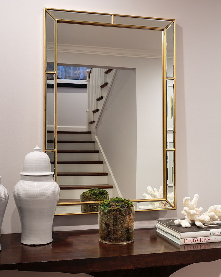 Простое и изящное настенное зеркало “Эвин” с универсальной прямоугольной формой рамой в золотом цвете, которая прекрасно отражает свет. Это зеркало возможно разместить на стене в горизонтальном и вертикальном положении.