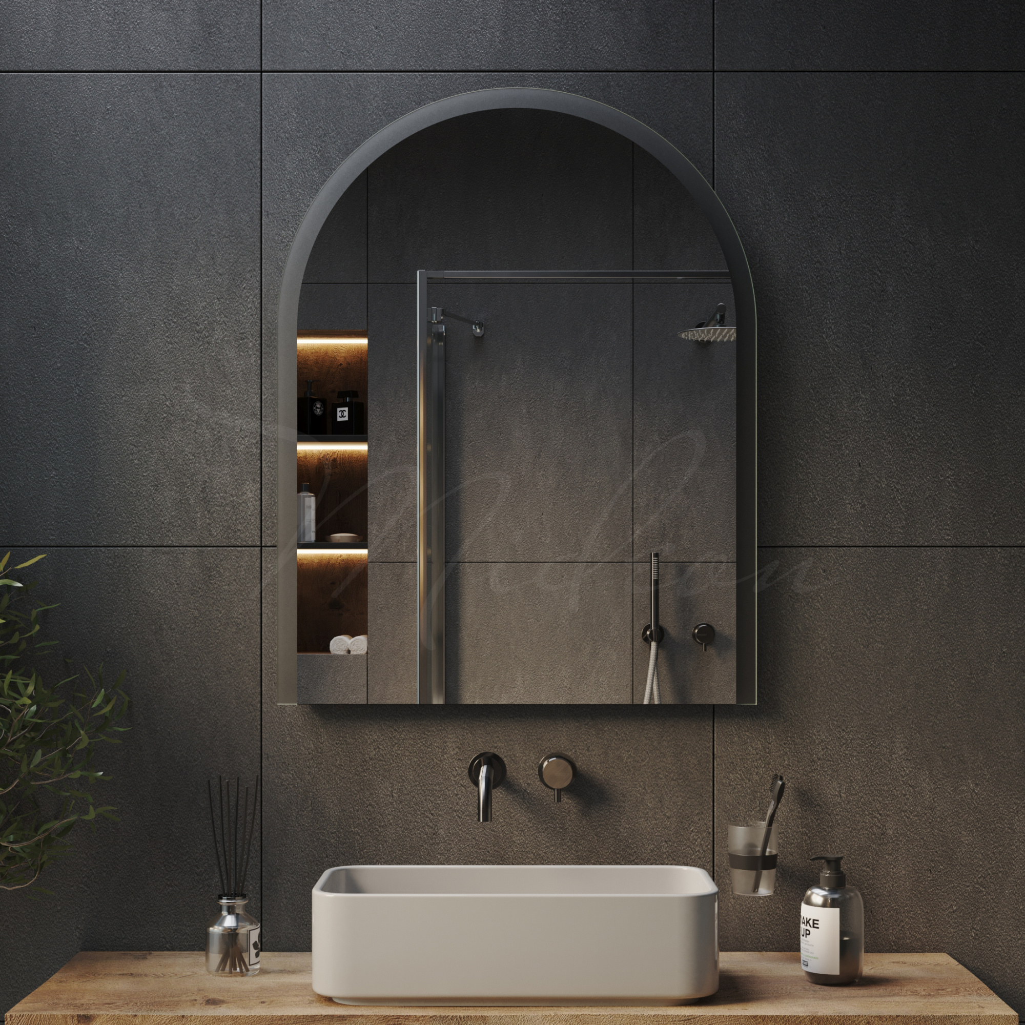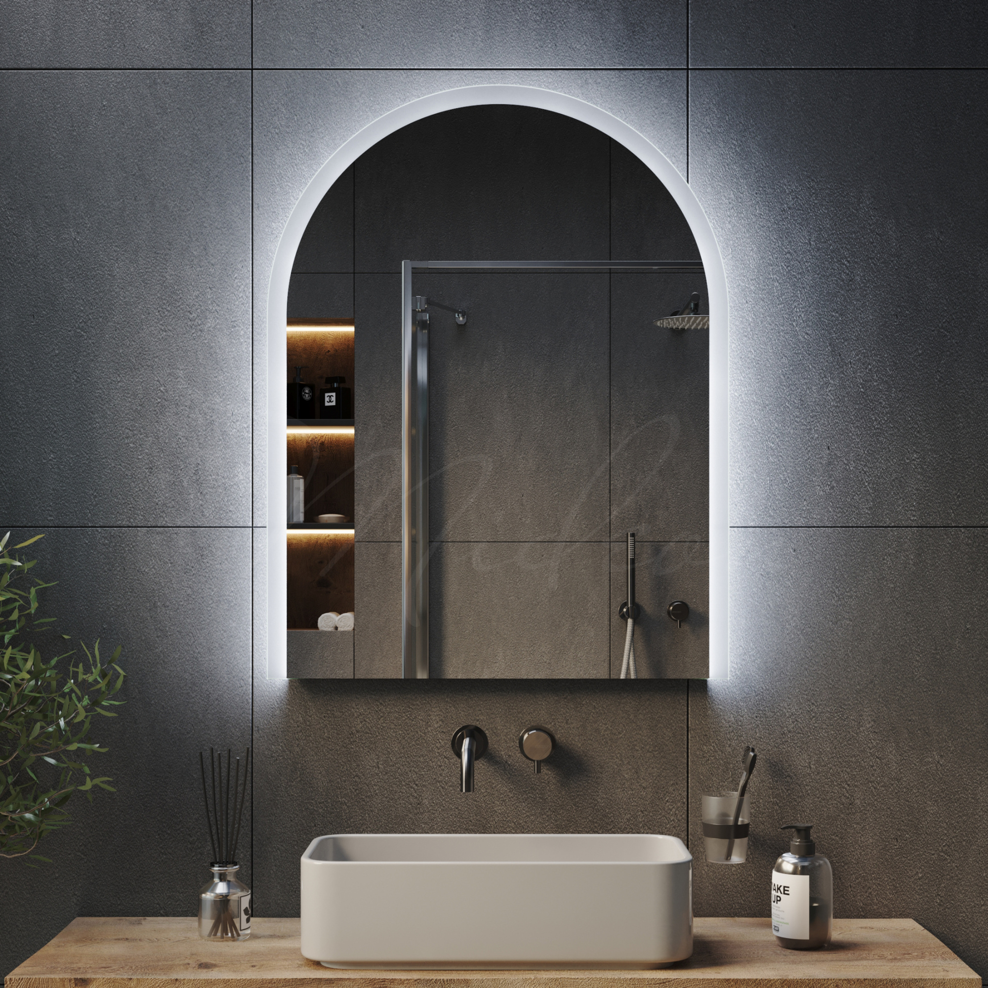 Все наши зеркала с открытой подсветкой имеют толщину всего 24 мм благодаря применению современной LED (светодиодной) подсветки, премиальных комплектующих и собственным производственным наработкам.